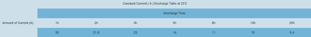 ظرفیت باتری 65 آمپرساعت در 25 درجه سانتی گراد با دشارژ 1 ساعته ( باتری در 1 ساعت از شارژ کامل به حالت تخلیه برسه ) : 55Ah