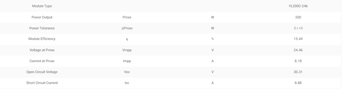 پنل خورشیدی 200 وات مونو کریستال YINGLI مدل YL200C-24b