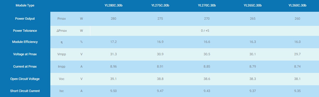 جهت دسترسی به سایر اطلاعات پنل خورشیدی 260 وات مونو کریستال 60 سلول YINGLI مدل YL260C-30b قسمت “اطلاعات بیشتر” را کلیک کنید.