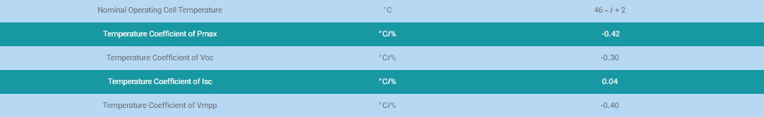 ضریب دمایی برای توان ماکزیمم : -0.42 %/C °
