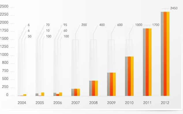 از سال 1998 ظرفیت تولیدی از 3 مگاوات به 4 گیگاوات در حال حاضر رسیده است.