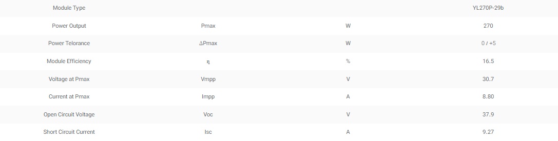 جهت دسترسی به سایر اطلاعات پنل خورشیدی 270 وات پلی کریستال 60 سلول YINGLI مدل YL270P-29b قسمت “اطلاعات بیشتر” را کلیک کنید.