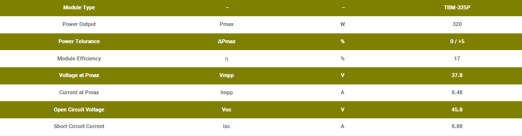 پنل خورشیدی 320 وات پلی کریستال مدل TBM-320P