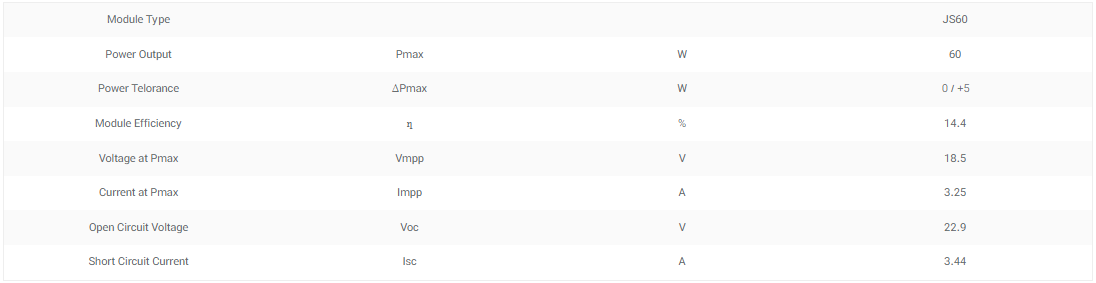 جهت دسترسی به سایر اطلاعات پنل خورشیدی 60 وات پلی کریستال YINGLI مدل JS 60 قسمت “اطلاعات بیشتر” را کلیک کنید.