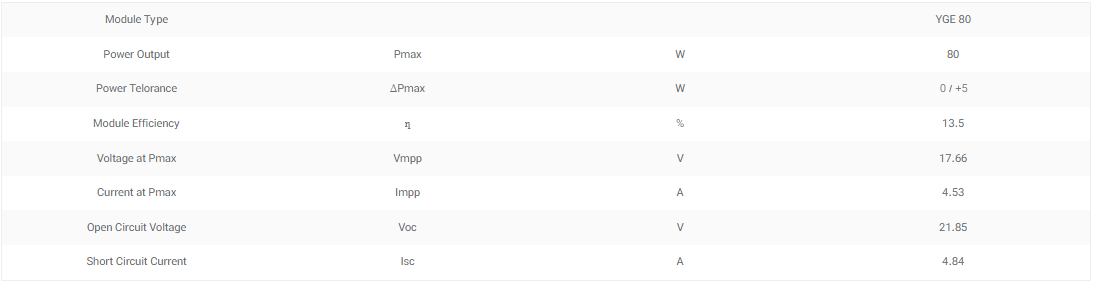 جهت دسترسی به سایر اطلاعات پنل خورشیدی 80 وات پلی کریستال YINGLI مدل YGE 80 قسمت “اطلاعات بیشتر” را کلیک کنید.
