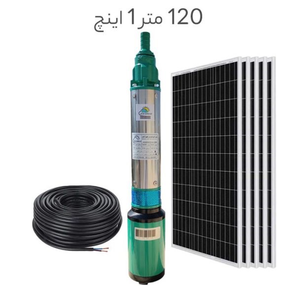 پمپ آب خورشیدی 1 اینچ عمق ۱۲۰ متر با 5 پنل خورشیدی ذغالی