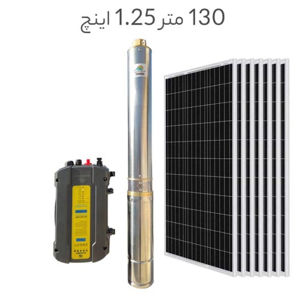 پمپ آب خورشیدی براشلس 1.25 اینچ عمق 130 متر با 7 پنل خورشیدی
