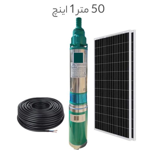 پمپ آب خورشیدی 1 اینچ عمق ۵۰ متر با 2 پنل خورشیدی ذغالی
